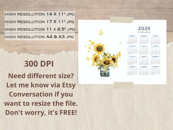 2024 Sunflower Calendar Year / Flower Handprint Art Craft Activity