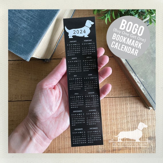 BOGO SALE 2024 Doxie. Bookmark Calendar vintage style, Long Hair